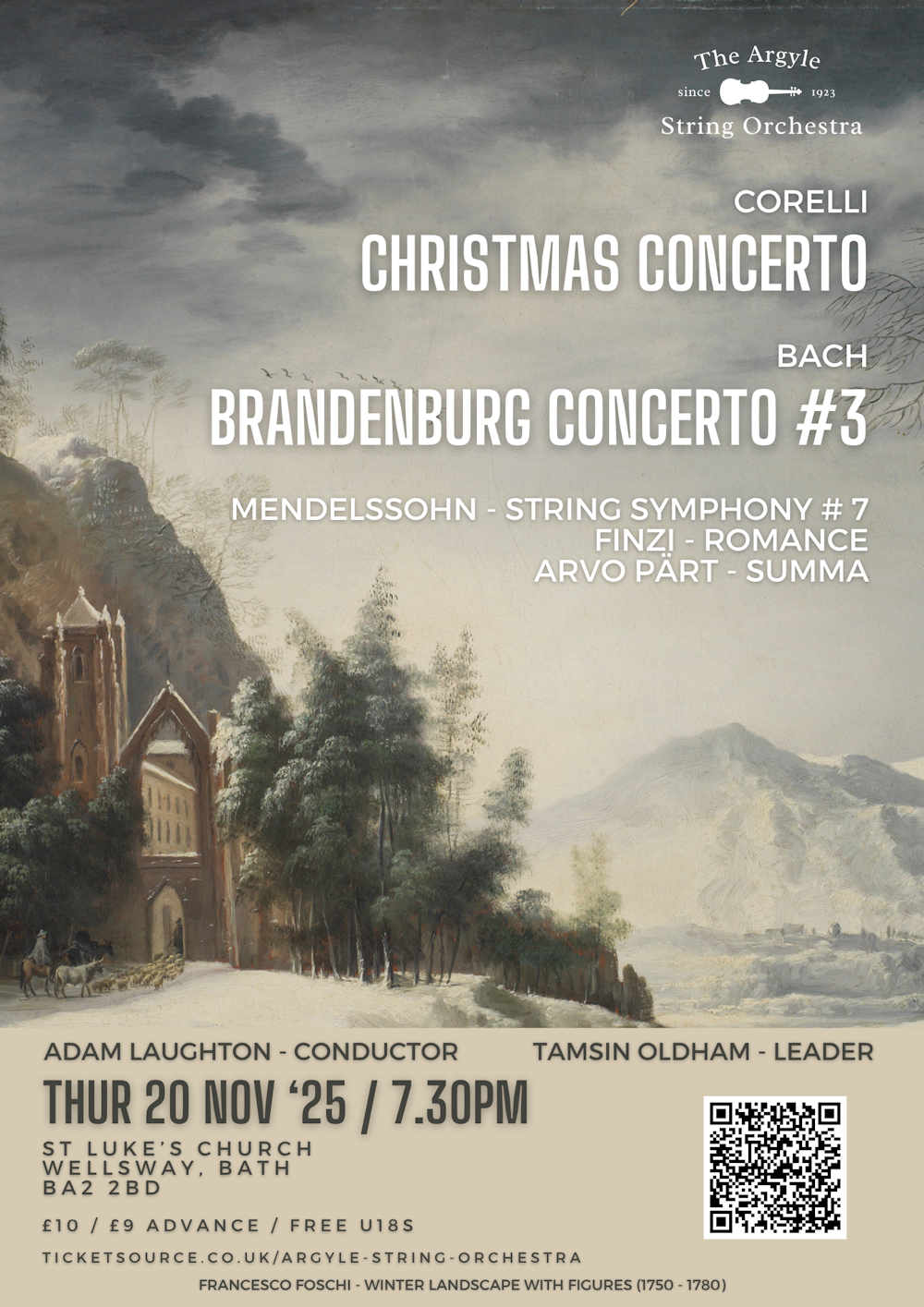 October 14, 2025I’m very much looking forward to playing in the Argyle Winter Concert at St. Luke’s. We’ll be playing pieces by Corelli, Bach, Mendelssohn, Finzi and Arvo Pärt. As always delicious homemade cakes will be on offer during the interval. Tickets have just gone on sale – https://www.ticketsource.com/argyle-string-orchestra.