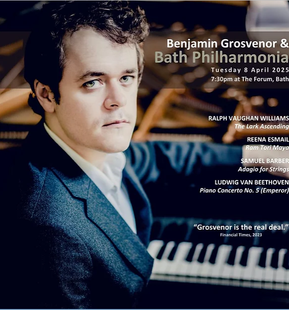 Looking forward to Bath Phil’s concert at The Forum. Visionary pianist Benjamin Grosvernor will perform Beethoven’s Emperor Piano Concerto and internationally renowned violinist Harriet Mackenzie will be performing Ralph Vaughan Williams’ The Lark Ascending.