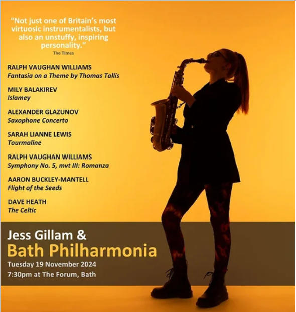 Music Bath Phil: November Concert October 28, 2024 Looking forward to Bath Phil’s November concert which will include superstar saxophonist Jess Gillam performing Alexander Glazunov’s Saxophone Concerto and Dave Heath’s The Celtic. Previous Bath Philharmonia Newer British Hen Welfare Trust Leave a ReplyYou must be logged in to post a comment.