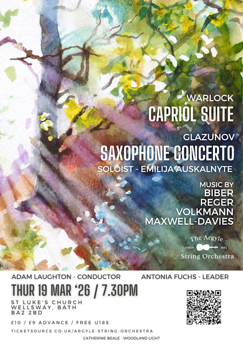 I’m very much looking forward to playing in the Argyle Spring Concert at St. Luke’s. We’ll be playing pieces by Biber, Warlock, Reger, Volkmann and Maxwell-Davies, and the wonderful Emilija Auskalnyte will be joining us for the Glazunov Saxophone Concerto.