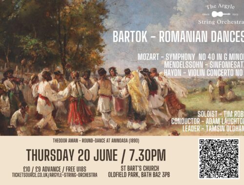 Looking forward to our Summer concert down at St. Bart’s. We’ll be playing Bartok’s Romanian Dances along with Mozart’s Symphony No 40 in G Minor, Mendelssohn’s Sinfoniesatz and Haydn’s Violin Concerto No 1. Drinks and Cakes at the interval as…