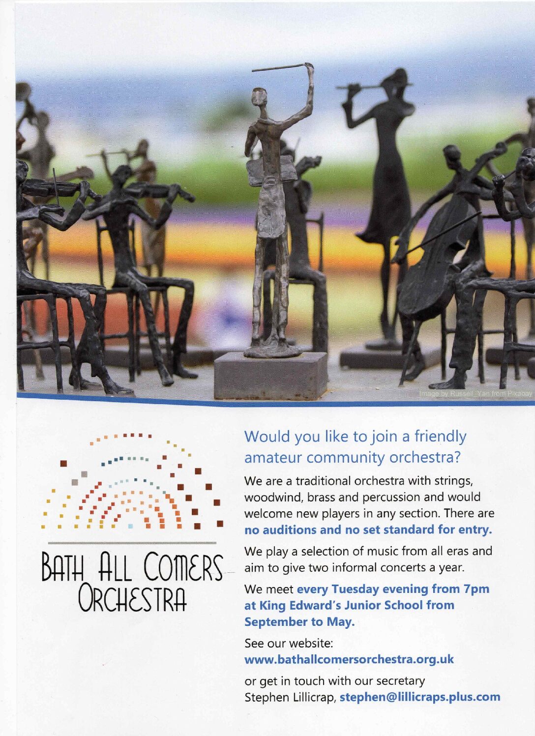 Looking forward to our Spring concert. The concert will feature pieces by three of Britain’s most enduring composers – Edward Elgar (Chanson de Matin and Chanson de Nuit), Charles Hubert Parry (An English Suite) and Ralph Vaughan Williams (Prelude Rhosymedre).…