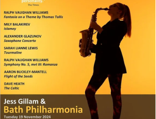 Looking forward to Bath Phil’s November concert which will include superstar saxophonist Jess Gillam performing Alexander Glazunov’s Saxophone Concerto and Dave Heath’s The Celtic.